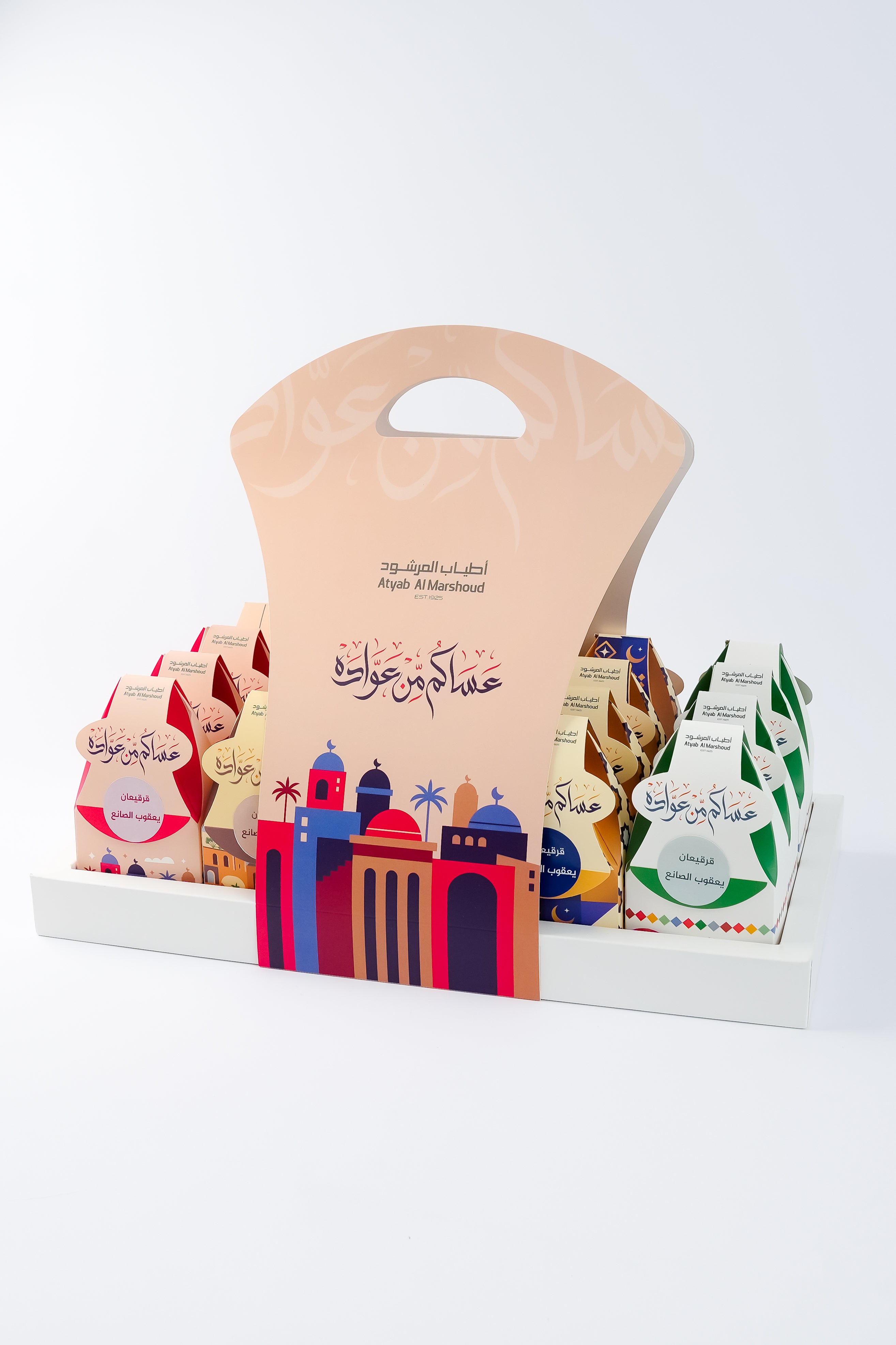 مجموعة من ٢٠ علبة قرقيعان الليالي العربية، تحتوي كل علبة منها على 3 غرامات من مسك المرشود.